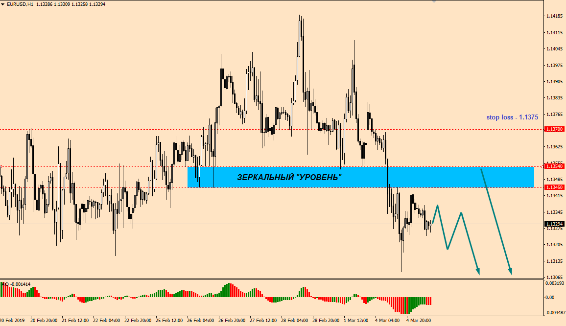 На часовом графике цена находится в 4-й коррекционной волне зарождающегося медвежьего импульса. По моим расчетам водораздел расположен на 1.1345-1.1354. Т.е. пока цена находится под ним, можно открывать продажи с целью обновления локального low. Если это произойдет, то медвежью импульсную волну можно считать полностью сформированной. Отмена сценария - обновление экстремума "левого плеча" 1.1370. Следовательно, стоп приказ устанавливаем на несколько пунктов выше него.