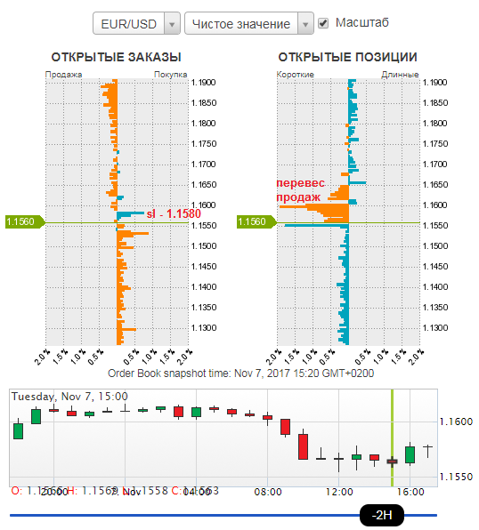 На нижеприведенных рисунках хорошо прослеживается тенденция установки стоп-приказов в диапазоне 1.1580 - 1.1625.