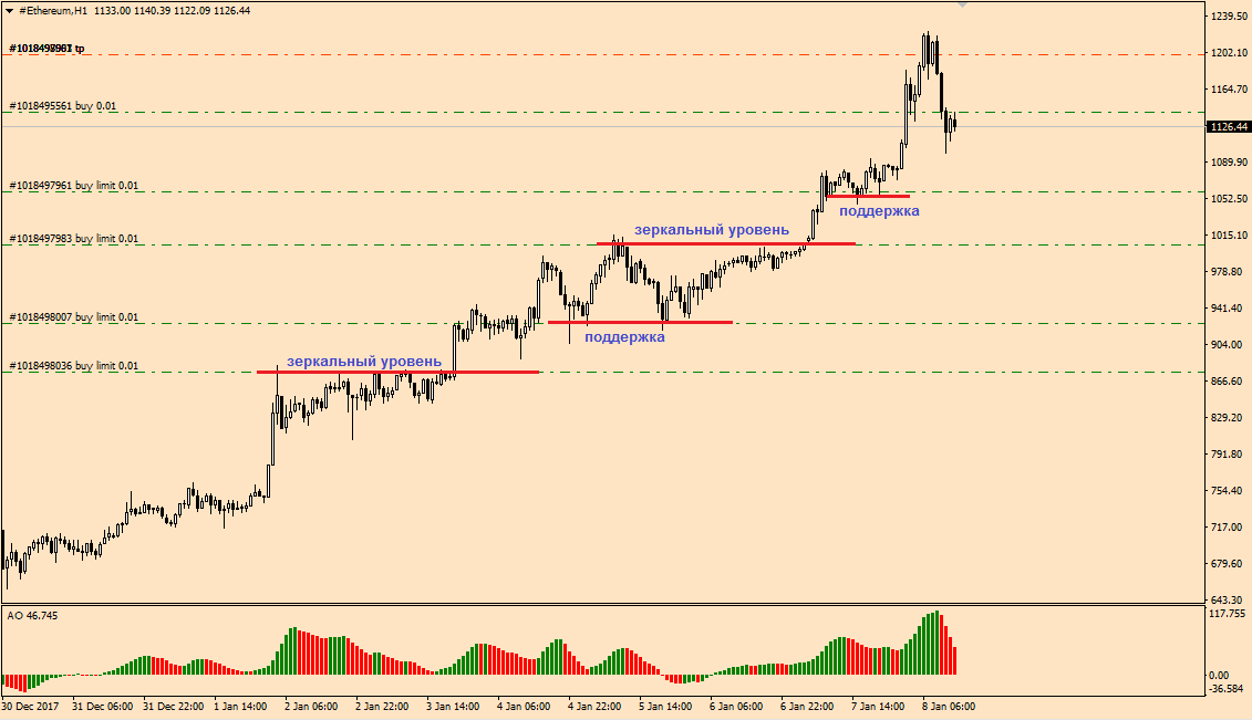 Лучшая на мой взгляд стратегия: на депозите в 100$ минимальными объемами от поддержек и "зеркальных уровней" Н1 набирать длинные позиции по #ethereum. Т.к. торговля ведется с плечом 1:1, то такая стратегия позволит регулярно фиксировать прибыль и выдерживать любые просадки.